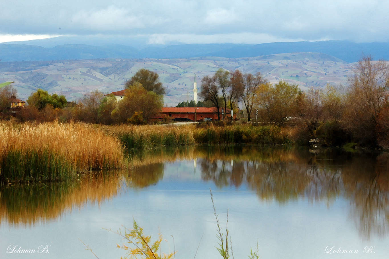 Erbaa-Kızılçubuk Köyü'nün göletten yansıması. Fotoğrafta Sulu Boya efekti kullanılmıştır...