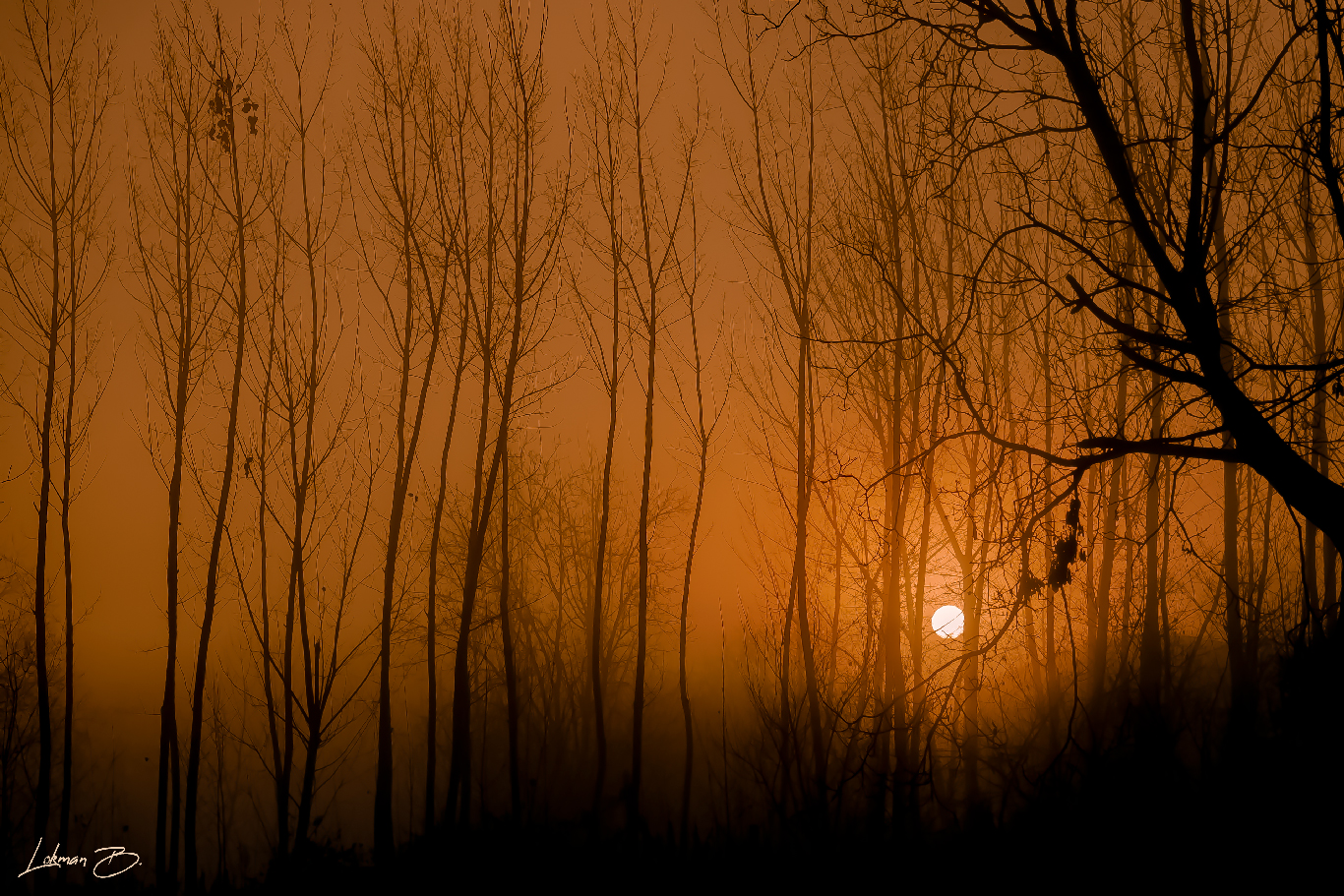 Kavaklığın arkasında sislerin içerisinde doğan güneş dikkatimi çekti ve ortaya böyle güzel bir manzara fotoğrafı çıktı...
